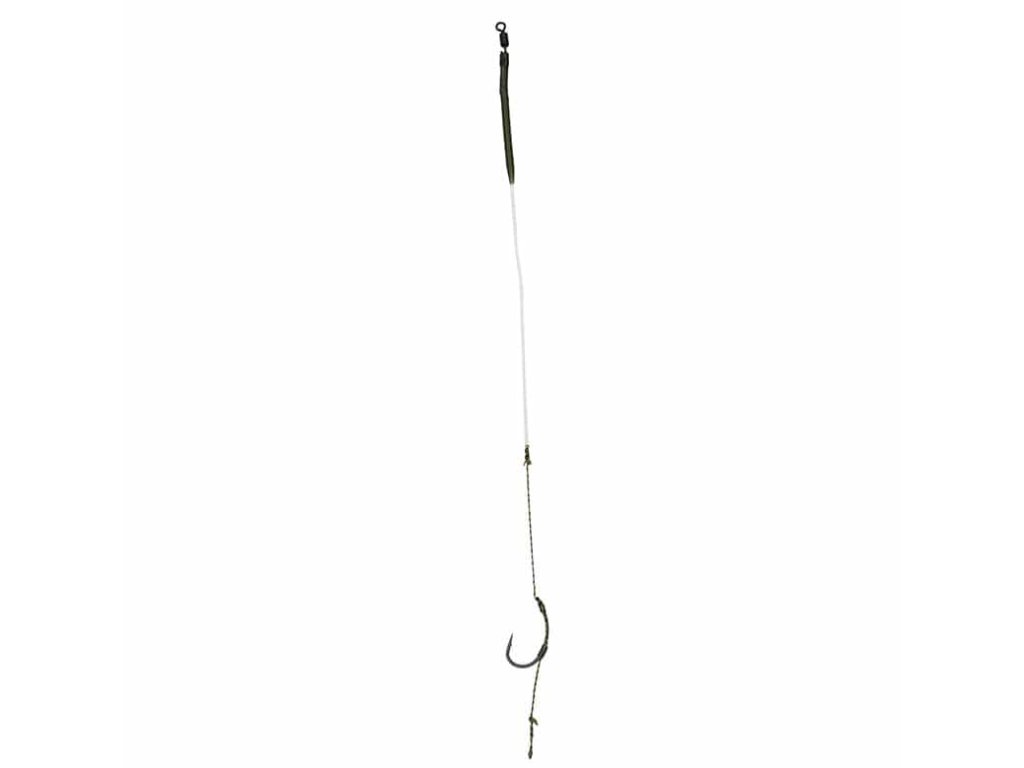 Tento návazec je vyroben z 25 lbs fluorocarbonu, což je tuhý prvek, který pomáhá tlačit nástrahu od olova při náhozu a zároveň kopíruje dno. Měkká část je vyrobena z měkké 25 lbs Ultra Soft pletenky.